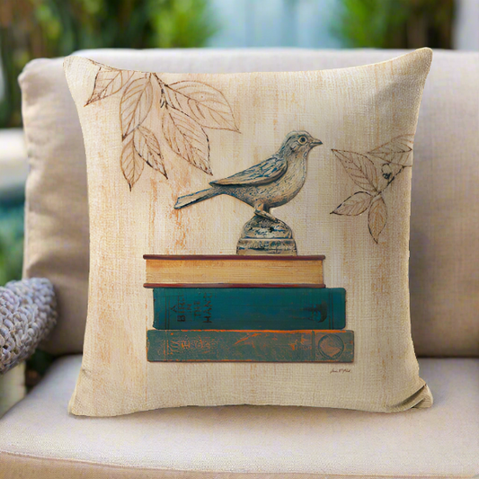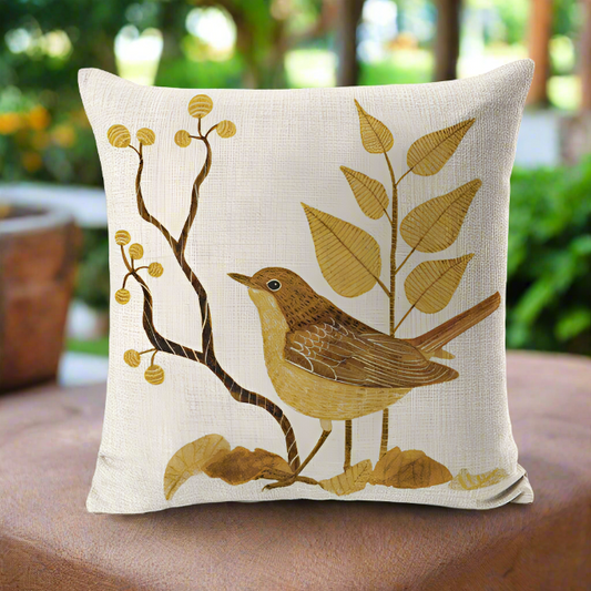Brown Bird With Flowers Decorative Throw Pillowcase