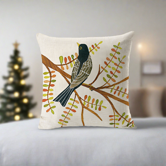 Cute Vintage Yellow Bird With Yellow Leaves Pillowcase
