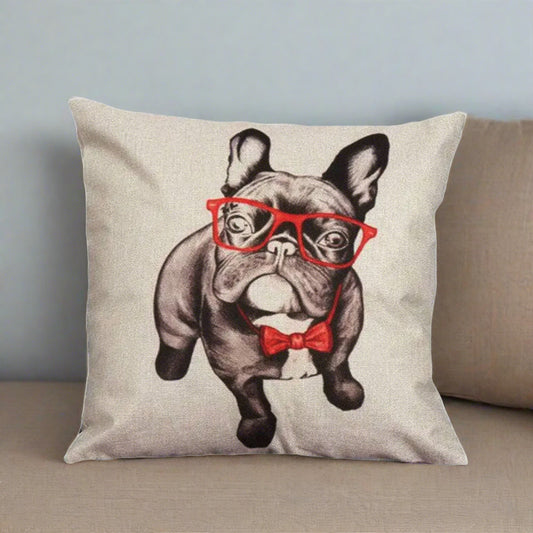 Frenchie French Bulldog With Red Glasses Throw Pillow