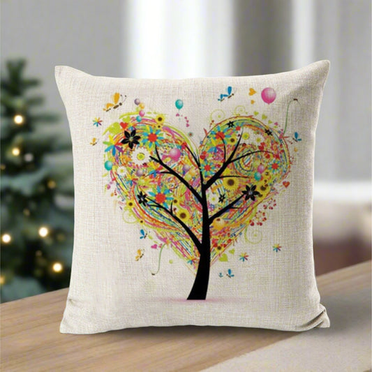 Colorful drawing Heart Shaped Tree Pillow Cover